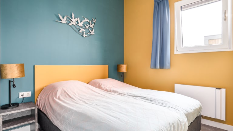 Erdgeschoss Bungalow 45 m² Diese Ferien-Lodge für 4 Personen weist eine Wohnfläche von 45 m² auf und umfasst 3 Räume, von denen 2 Schlafzimmer sind. Im größeren Schlafzimmer gibt es ein Doppelbett. Im anderen befinden sich zwei Einzelbetten. Zudem gibt es in der Ferien-Lodge ein großes Wohnzimmer mit großen Fenstern und einer Komplettküche. Im Bad sind Dusche, WC und Waschbecken vorhanden. Die Lodge verfügt über eine Veranda, und Sie dürfen die drahtlose Internetverbindung kostenfrei nutzen. Dieser Haustyp ist rauchfrei, und in einigen Unterkünften sind Tiere nicht zulässig. Die Inneneinrichtung der Unterkünfte kann unterschiedlich ausfallen.