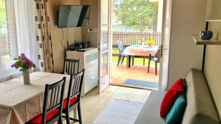 Das Ferienhaus verfügt über 2 Schlafzimmer, ein Wohnzimmer und eine voll ausgestattete Küchenzeile, die mit einem Kühlschrank und einer Kaffeemaschine ausgestattet ist. Das Badezimmer beinhaltet eine Dusche und einen Haartrockner. Handtücher und Bettwäsche sind ebenfalls vorhanden.