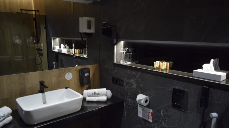Die klimatisierten Zimmer im Twins Hotel & Spa sind komfortabel eingerichtet und bieten alles, was Sie für einen angenehmen Aufenthalt benötigen. Jedes Zimmer verfügt über einen Schreibtisch, einen Wasserkocher, eine Mikrowelle, eine Minibar, einen Safe, einen Flachbild-TV und ein eigenes Badezimmer mit Dusche. Die Zimmer sind mit hochwertiger Bettwäsche und Handtüchern ausgestattet.