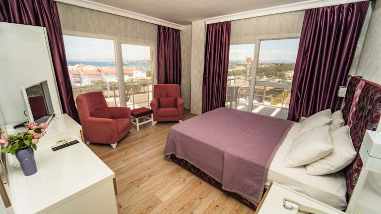 Alle Zimmer im Twins Hotel Çeşme sind klimatisiert und bieten einen Balkon mit Meerblick. Genießen Sie den Komfort eines eigenen Badezimmers mit Dusche und Haartrockner. Zur Ausstattung gehören auch ein TV und kostenfreies WLAN, damit Sie während Ihres Aufenthalts in Verbindung bleiben können.
