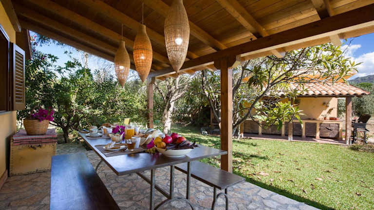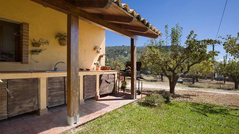Das Ferienhaus bietet zwei Schlafzimmer, ein Wohnzimmer sowie zwei Badezimmer mit einer Dusche und einer Badewanne. Die Zimmer sind klimatisiert und bieten Gartenmöbel für den Außenbereich.