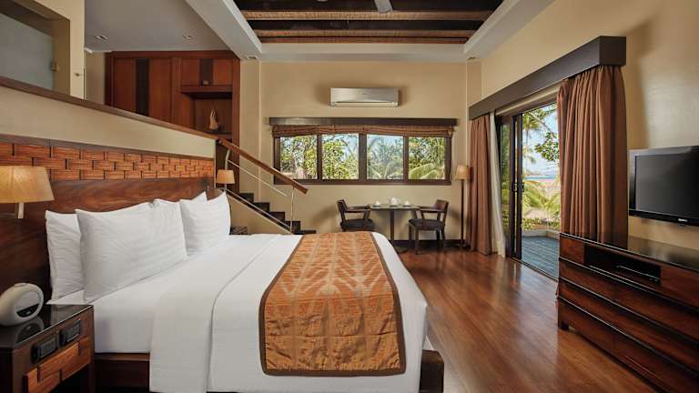 Die klimatisierten Bungalows sind stilvoll eingerichtet und verfügen über einen eigenen Balkon, einen Sitzbereich mit Sofa und einen Flachbild-Kabel-TV. Jedes Zimmer bietet zudem ein eigenes Bad mit einer Badewanne sowie einer Dusche.