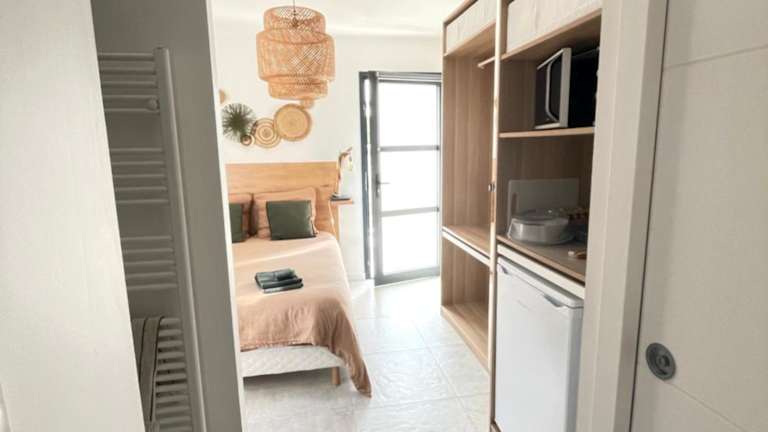 Die Ferienwohnung bietet einen Blick auf den Garten und ist mit Fliesenböden ausgestattet. Sie verfügt über 1 Schlafzimmer und 2 Badezimmer, die mit einer Dusche und einem Haartrockner ausgestattet sind. Handtücher und Bettwäsche werden zur Verfügung gestellt.