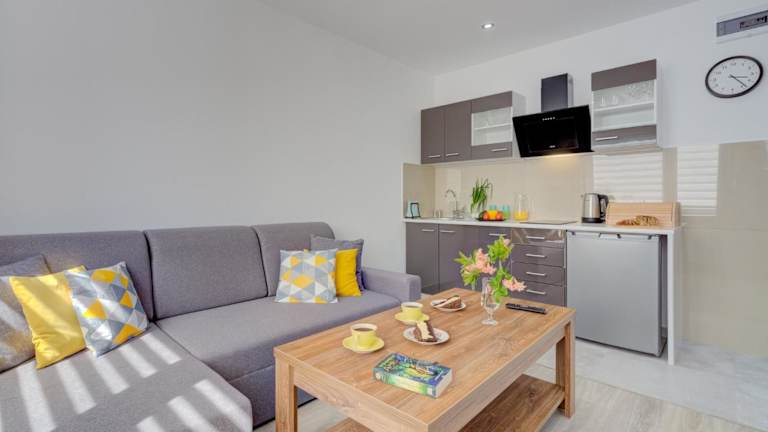 Die Unterkünfte sind mit einer voll ausgestatteten Küche ausgestattet, die einen Kühlschrank, Ofen, Mikrowelle, Herdplatte, Kaffeemaschine und Wasserkocher umfasst, was eine Selbstversorgung ermöglicht.