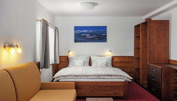 Die Pension U Komárků liegt im Herzen des Ortszentrums und bietet eine ideale Lage, um die umliegende Gegend zu erkunden. In unmittelbarer Nähe finden Sie ein Lebensmittelgeschäft und eine Bushaltestelle. Die Skigebiete Hromovka, Petr und Medvědín sind leicht zu erreichen und bieten erstklassige Möglichkeiten zum Skifahren und Snowboarden. Für Wasserratten ist der Aquapark Spindlermühle nur eine kurze Fahrt entfernt. Naturliebhaber können eine 10 km lange Wanderung zur Elbquelle unternehmen.