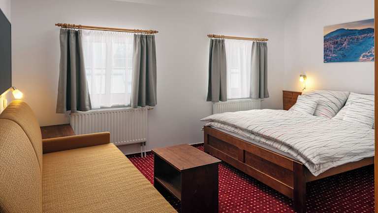 Die Zimmer in der Pension U Komárků sind gemütlich eingerichtet und mit Annehmlichkeiten wie kostenfreiem WLAN, Sat-TV und einem Kühlschrank ausgestattet. Genießen Sie den Komfort eines eigenen Badezimmers mit Dusche und den Blick auf die umliegenden Berge. Eine 24-Stunden-Rezeption steht Ihnen zur Verfügung und trägt zu Ihrem Komfort bei.