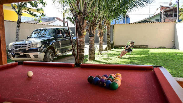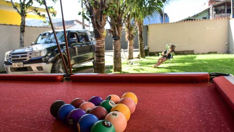 Das Casa UBATUBA com MESA DE BILHAR, CHURRASQUEIRA, AR CONDICIONADO, SUÍTE, 350m da praia ist eine ideale Unterkunft in Ubatuba für einen entspannten Urlaub. Mit einem schönen Garten, einem Restaurant und Grillmöglichkeiten bietet das Ferienhaus alle Annehmlichkeiten, die Sie für einen angenehmen Aufenthalt benötigen. Die klimatisierte Unterkunft ist gut ausgestattet und bietet kostenfreies WLAN sowie Privatparkplätze. Die Lage ist ideal, da Sie nur wenige Gehminuten von verschiedenen Stränden und Sehenswürdigkeiten entfernt sind.