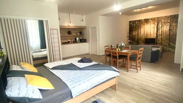 Ubytování v srdci Písku ist eine Ferienwohnung mit Gartenblick und kostenlosem WLAN in allen Bereichen. Die Unterkunft wird von einem privaten Gastgeber geführt und erlaubt keine Junggesellen-/Junggesellinnenabschiede oder ähnliche Feiern. Beachten Sie bitte, dass das Mindestalter für den Check-in bei 18 Jahren liegt und Haustiere nicht gestattet sind.