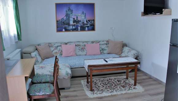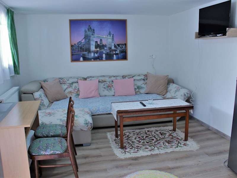 Das Apartment im Ubytovanie u Vlada ist gemütlich und komfortabel eingerichtet. Es verfügt über ein Schlafzimmer, ein Wohnzimmer, einen Flachbild-TV und eine voll ausgestattete Küche mit Kühlschrank und Mikrowelle. Das Badezimmer ist mit einer Dusche ausgestattet. Das Apartment bietet zudem einen Sitzbereich und ein weiteres Badezimmer. Von der Terrasse aus haben Sie einen schönen Blick auf den Garten.