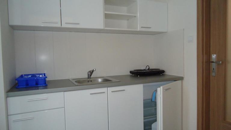 Die Ferienwohnung ist ausgestattet mit einem Flachbild-TV, einer gut eingerichteten Küchenzeile, die über einen Kühlschrank, eine Mikrowelle und eine Herdplatte verfügt, sowie einem Badezimmer mit Dusche und Haartrockner.