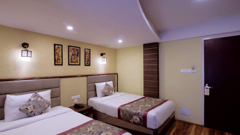 In der Unterkunft wird ein vielfältiges Frühstück angeboten, das als Buffet, à la carte oder in kontinentaler Form serviert wird. Das Restaurant bietet indische, nepalesische und asiatische Küche an, wodurch eine breite Palette an kulinarischen Optionen zur Verfügung steht. Auf Anfrage sind zudem vegetarische und vegane Gerichte erhältlich.
