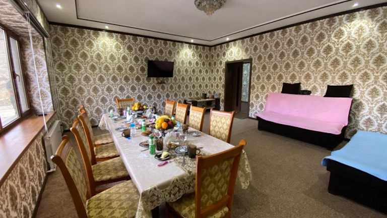 Das Uhum Guesthouse in Kyzylkumskiy ist eine gemütliche Pension mit einem schönen Garten und einem hauseigenen Restaurant. Die Unterkunft bietet kostenfreie Privatparkplätze und einen Flughafentransfer gegen Gebühr. Die klimatisierten Zimmer sind mit allen Annehmlichkeiten ausgestattet, die Sie für einen angenehmen Aufenthalt benötigen, wie z.B. einen Schreibtisch, eine Kaffeemaschine, einen Kühlschrank, einen Backofen, einen Safe, einen Flachbild-TV, eine Terrasse und ein eigenes Bad mit Dusche. Einige Zimmer bieten zudem einen herrlichen Blick auf die Stadt und ein Gemeinschaftsbad mit Badewanne und kostenlosen Pflegeprodukten. In der Unterkunft finden Sie auch einen Haartrockner und einen Computer in den Zimmern. Der nächstgelegene internationale Flughafen Samarkand ist etwa 151 km entfernt.