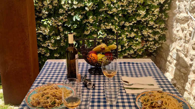 Die Ferienwohnung besteht aus einem Schlafzimmer, einem Wohnzimmer und einer voll ausgestatteten Küchenzeile mit Kühlschrank und Kaffeemaschine. Das Badezimmer ist mit einem Bidet und einer Dusche ausgestattet. Handtücher und Bettwäsche werden bereitgestellt.
