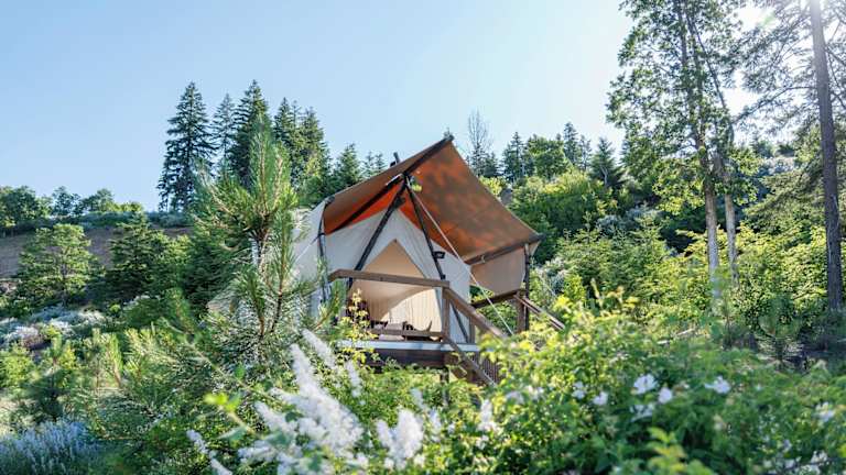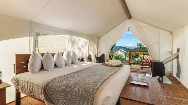 Under Canvas Columbia River Gorge bietet eine Veranda/Patio sowie ein voll ausgestattetes eigenes Badezimmer mit Dusche und kostenlosen Pflegeprodukten.