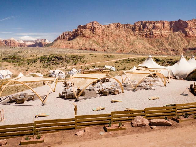 Verbringen Sie einen außergewöhnlichen Aufenthalt im Under Canvas Zion und erleben Sie Glamping auf einer neuen Ebene. Die einzigartigen Zelt-Lodges bieten Ihnen den Komfort eines Zuhauses und ermöglichen es Ihnen, die spektakuläre Wüste von Utah zu genießen. Die Lage am Rande des Zion-Nationalparks ist perfekt, um die atemberaubende Natur zu erkunden und Aktivitäten wie Wandern, Radfahren, Canyoning und Reiten zu unternehmen. Lassen Sie den Tag bei einer Yoga-Sitzung ausklingen und genießen Sie am Morgen ein leckeres amerikanisches oder vegetarisches Frühstück.