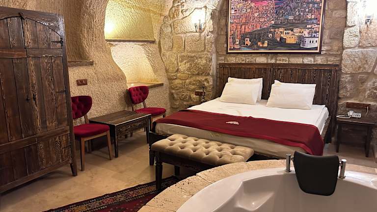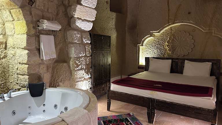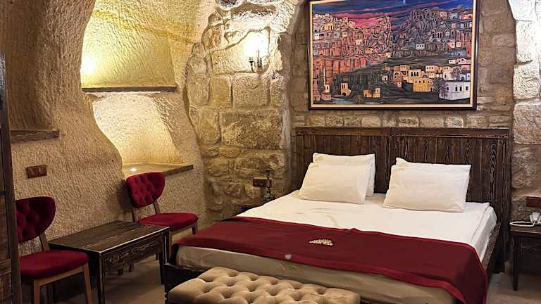 Das Hotel Under Cave Cappadocia in Ürgüp ist eine ideale Unterkunft für Reisende, die das historische Zentrum von Ürgüp erkunden möchten. Mit einem Concierge-Service, komfortablen Nichtraucherzimmern und einem schönen Garten bietet das Hotel seinen Gästen einen angenehmen Aufenthalt. Das kostenfreie WLAN und die Terrasse ergänzen das Angebot. Nutzen Sie auch den Zimmerservice und die 24-Stunden-Rezeption für einen stressfreien Aufenthalt. Das Hotel liegt in der Nähe vieler Sehenswürdigkeiten, darunter das Museum von Ürgüp, das Kloster Nikolos und das Freilichtmuseum Zelve. Das kontinentale Frühstück ist ein weiteres Highlight des Hotels.