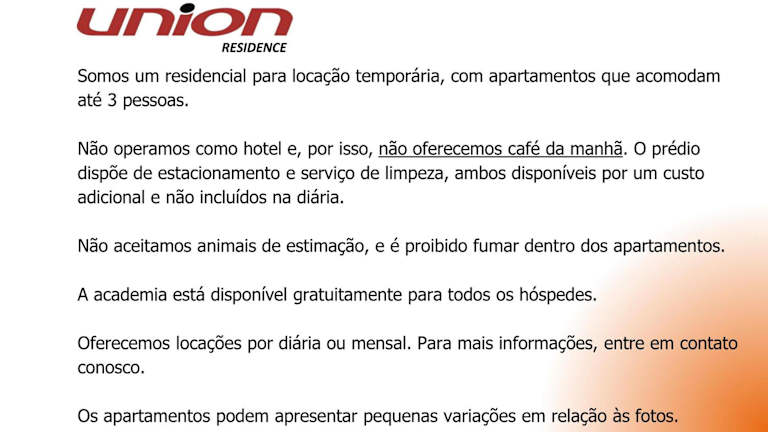 Die Union Residence befindet sich in zentraler Lage in Novo Hamburgo, nur 100 Meter vom Einkaufszentrum Bourbon und dem Einkaufsviertel Rua dos Calçados entfernt. Der Bahnhof Trensurb ist nach 200 Metern zu erreichen, während das Veranstaltungszentrum Fenac 2 Kilometer entfernt liegt.