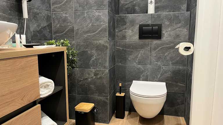 Die Ferienwohnung verfügt über ein Schlafzimmer und ein Badezimmer. Weiterhin sind Bettwäsche, Handtücher, ein Flachbild-TV und ein Essbereich vorhanden. Eine voll ausgestattete Küche ermöglicht Selbstversorgung, während die Terrasse mit Stadtblick zusätzlichen Komfort bietet.