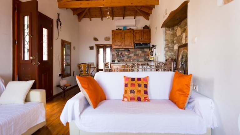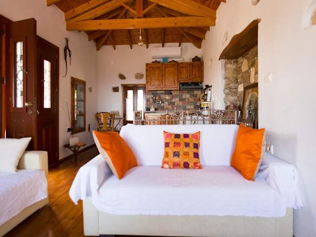 Das Ferienhaus Aegean Traditional House erstreckt sich über zwei Ebenen. Im Erdgeschoss befindet sich ein gemütliches Schlafzimmer und ein Badezimmer, das in den ursprünglichen Felsen eingebettet ist und ein einzigartiges Höhlengefühl vermittelt. Im Obergeschoss befindet sich das Wohnzimmer und eine voll ausgestattete Küche. Das Haus verfügt zudem über zwei kleine Balkone und einen kleinen Garten, in dem Sie die frische Luft und die schöne Umgebung genießen können. WLAN steht Ihnen in allen Bereichen des Hauses kostenlos zur Verfügung.