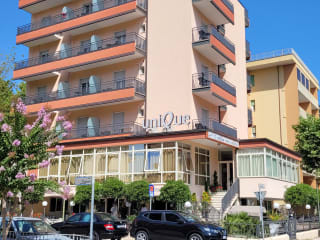 Das Unique Hotel in Cesenatico ist die perfekte Wahl für Ihren Aufenthalt in der Stadt. Nur 700 m vom Strand entfernt, bietet das Hotel kostenfreie Fahrräder, Parkplätze und WLAN. Die Zimmer sind klimatisiert und verfügen über einen Balkon mit Blick auf die Stadt. Das Hotel bietet auch eine Bar und verschiedene Freizeitmöglichkeiten wie Tischtennis und Radfahren. Genießen Sie ein köstliches Frühstück und erkunden Sie die Umgebung, einschließlich der nahe gelegenen Strände Gatteo a Mare und Bellaria Igea Marina.