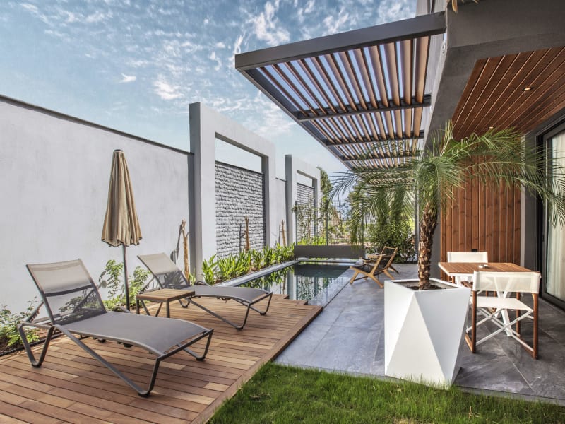 Wir versprechen Ihnen, unseren geschätzten Gästen, ein einzigartiges Urlaubserlebnis, indem wir unsere moderne Architektur und unser komfortables Design mit unserem "personalisierten" Service-Ansatz kombinieren. Wir laden Sie ein, den Urlaub zu erleben, von dem Sie geträumt haben, mit unserer Landschaft, die sich mit Kiefern und jahrhundertealten Olivenbäumen auf einer Fläche von 10.000 m2 verbindet, und unseren À-la-carte-Optionen, die Ihren Gaumen ansprechen.