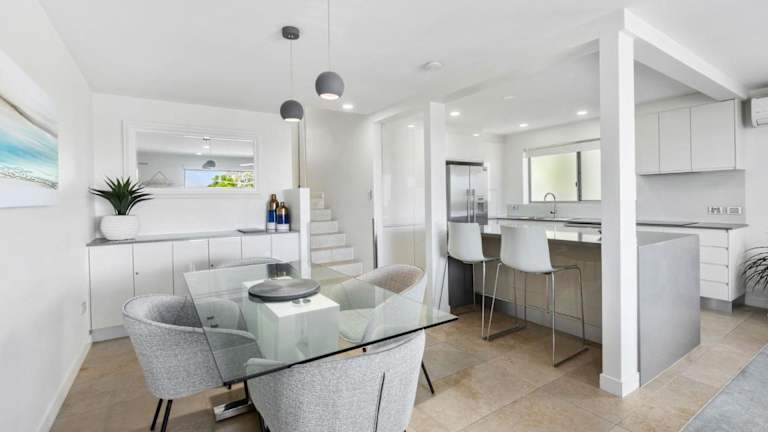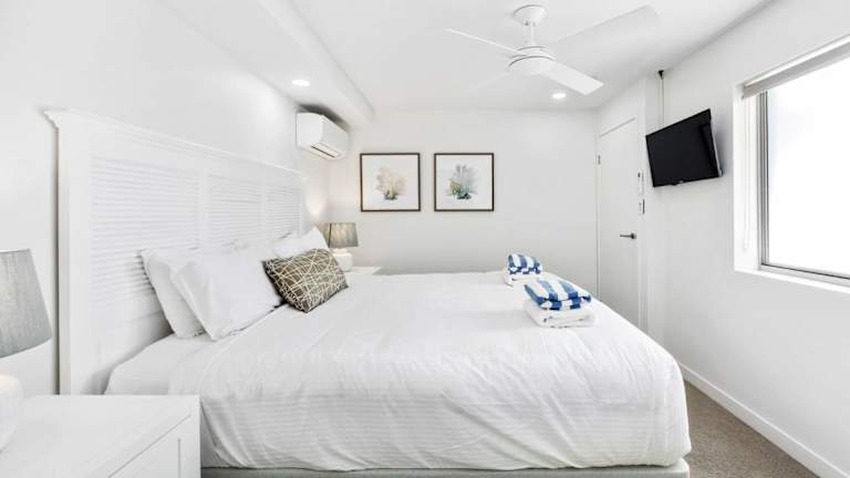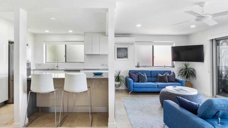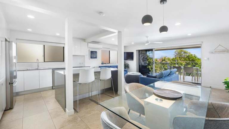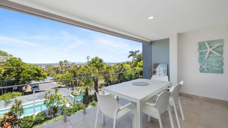 Unit 1 Taralla 16 18 Edgar Bennett Avenue Noosa Heads bietet klimatisierte Übernachtungsmöglichkeiten mit einem Balkon. Die Unterkunft ist modern gestaltet und bietet Zugang zu kostenlosem WLAN.