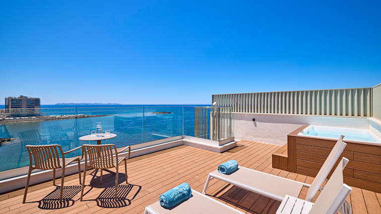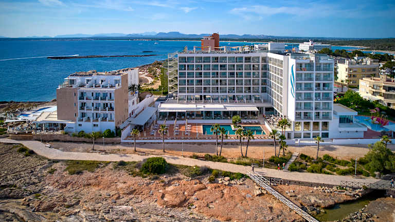 Ankommen, wohlfühlen und den Alltag vergessen! Das Ferienhotel Universal Hotel Romántica in Colonia de Sant Jordi liegt nur wenige Schritte vom Strand Es Trenc entfernt und ist ideal für einen Urlaub mit Kindern auf Mallorca. Ob Sie kilometerlange Sandstrände oder die Animation im Hotel wählen, der einmalige Ferienspaß ist Ihnen sicher. Der persönliche Service und die familiäre Atmosphäre des beliebten 3-Sterne-Hotels machen Ihren Aufenthalt zu einem besonderen Urlaubserlebnis. Entspannung pur finden Sie auf der Holzsonnenterrasse auf dem Felsplateau direkt am Meer. Spektakuläre Aussicht auf das Meer, gute Küche, abwechslungsreiche Unterhaltung und ein großer Kinderpool mit Rutschbahnen werden Ihren Urlaub unvergesslich machen.