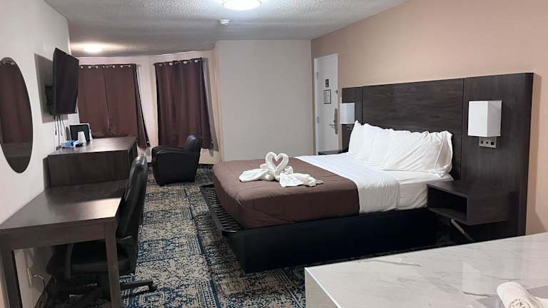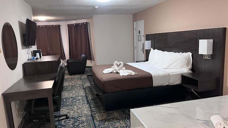 Das Falls Inn & Suites in Niagara Falls bietet eine ideale Lage, nur 15 Gehminuten von den Horseshoe Falls entfernt. Das Hotel verfügt über kostenfreies WLAN in allen Zimmern und ist nur eine kurze Fahrt vom Fallsview Casino entfernt. Die Zimmer sind klimatisiert und bieten Kabel-TV sowie Annehmlichkeiten wie einen Kühlschrank und eine Mikrowelle. Genießen Sie nach einem ereignisreichen Tag auf der Terrasse des Hotels, die mit Liegestühlen zum Entspannen einlädt. Das Falls Inn & Suites liegt auch im Herzen des Restaurantviertels von Niagara, wo eine Vielzahl von Restaurants zu Fuß erreichbar sind. Das Kongresszentrum Scotia Bank ist nur 2 Fahrminuten entfernt.