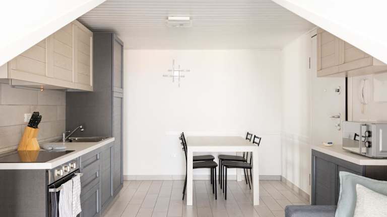 Die Ferienwohnung umfasst 2 Schlafzimmer, ein Wohnzimmer, einen Flachbild-TV, eine gut ausgestattete Küche mit Kühlschrank und Ofen sowie 1 Badezimmer mit Bidet. Handtücher und Bettwäsche werden zur Verfügung gestellt. Zudem gibt es eine Terrasse mit Meerblick.