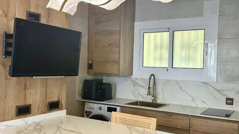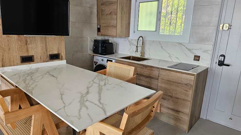 Die Ferienwohnung verfügt über ein Schlafzimmer, ein Wohnzimmer, einen Flachbild-TV, eine gut ausgestattete Küche mit Kühlschrank und Mikrowelle sowie ein Badezimmer mit Dusche. Bürowäsche und Handtücher werden nach den Richtlinien der örtlichen Behörden gewaschen. Zur Ausstattung gehört zudem eine Klimaanlage.