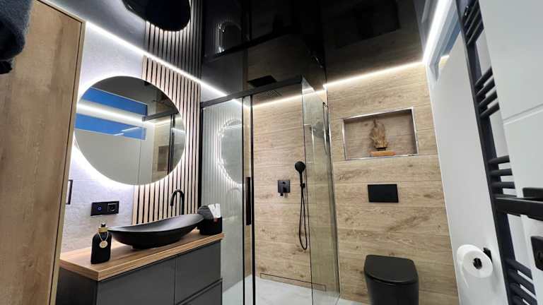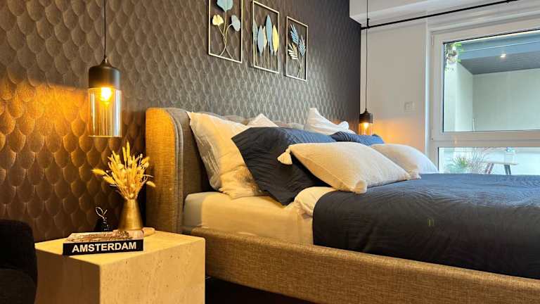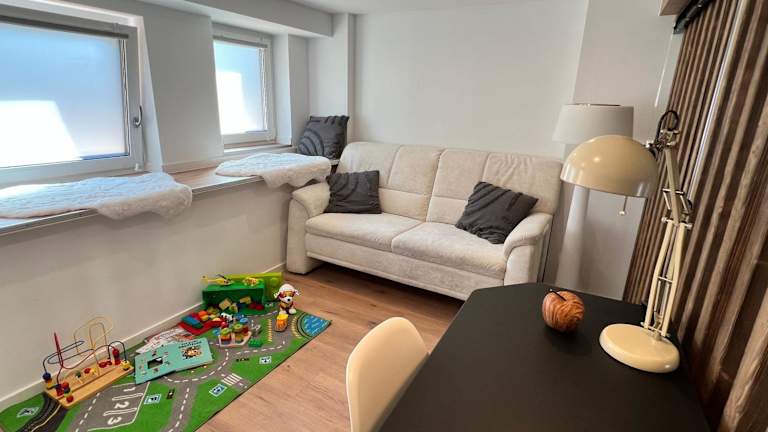 Die Ferienwohnung besteht aus einem Schlafzimmer, einem Wohnzimmer sowie einer voll ausgestatteten Küche, die mit einem Geschirrspüler und einer Kaffeemaschine ausgestattet ist. Zusätzlich gibt es ein Badezimmer mit einer Dusche und kostenlosen Pflegeprodukten. Handtücher und Bettwäsche werden bereitgestellt.