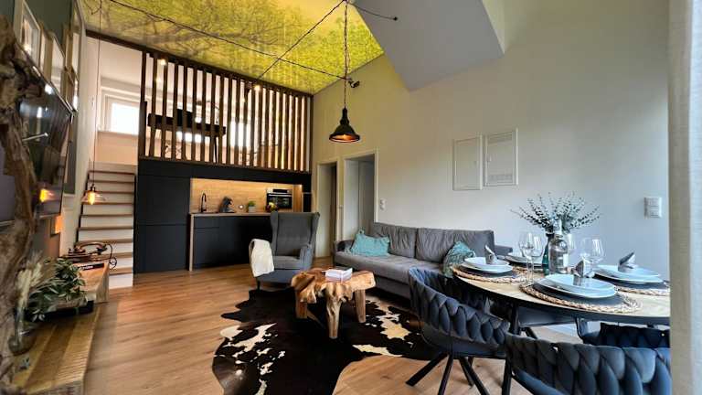 Unter der Baumkrone ist eine Ferienwohnung, die eine komfortable Übernachtungsmöglichkeit in ruhiger Umgebung bietet. Zur Unterkunft gehören Annehmlichkeiten wie ein Balkon und kostenloses WLAN. Es steht außerdem ein kostenloser Privatparkplatz zur Verfügung.
