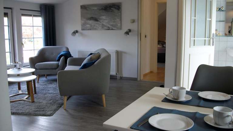 Die Ferienwohnung verfügt über ein Schlafzimmer, eine voll ausgestattete Küche mit Kühlschrank und Geschirrspüler, einen Flachbild-TV, einen Sitzbereich sowie ein Badezimmer mit einer Dusche. Handtücher und Bettwäsche werden zur Verfügung gestellt.