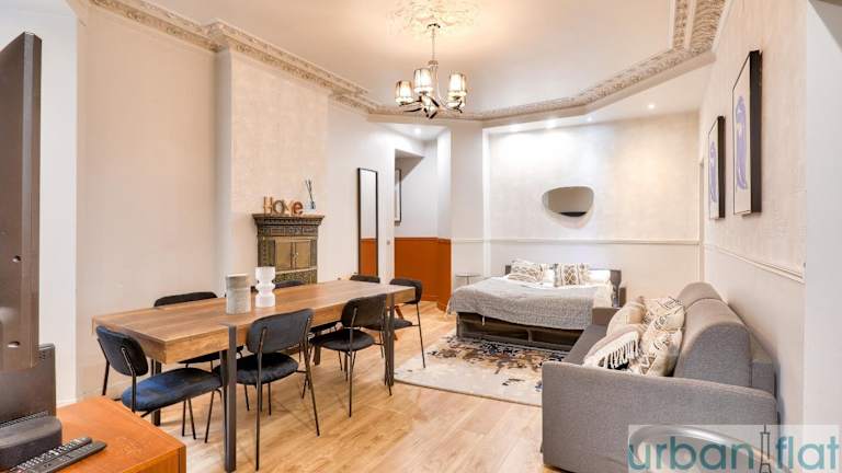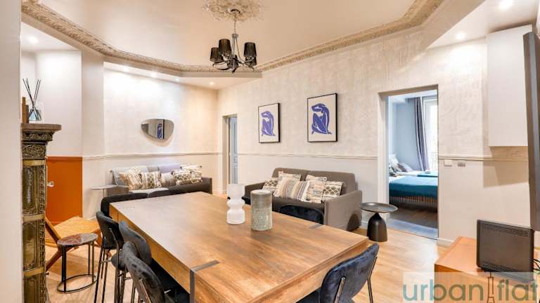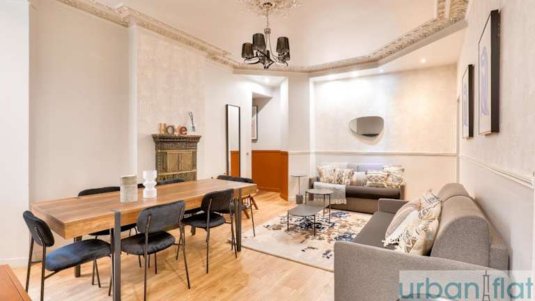 Die Unterkunft Urban Flat 57 - Luxury 4BDR Parisian Flat bietet eine großzügige Ferienwohnung mit einer Terrasse und direktem Zugang zu einem Balkon.