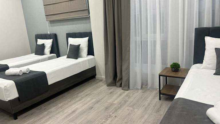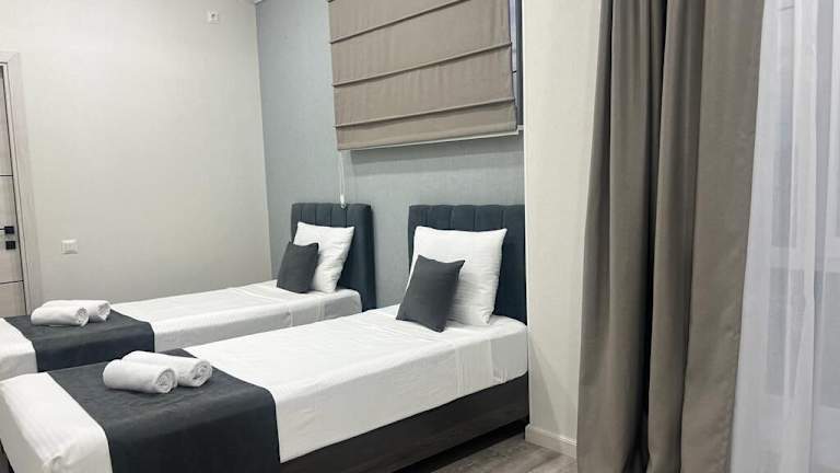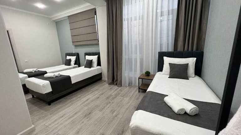 Das Urban Hotel befindet sich in Bischkek, ca. 1 Kilometer vom Stadtzentrum entfernt und in der Nähe des Bahnhofs, der etwa 200 Meter entfernt liegt. Die Umgebung bietet Einkaufsmöglichkeiten, darunter einen Supermarkt.
