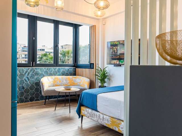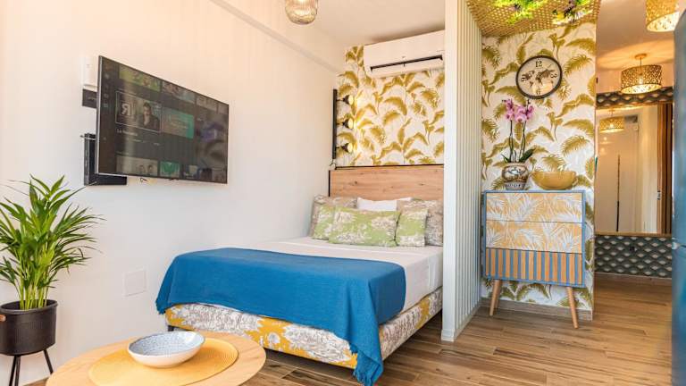 Urban Luxe Studio Torremoilinos bietet eine modern gestaltete Ferienwohnung mit Stadt- und Meerblick. Die Unterkunft verfügt über Annehmlichkeiten wie kostenloses WLAN, Klimaanlage und Haushaltsgeräte, die den Komfort der Gäste erhöhen. Beachten Sie bitte, dass die Ankunft nach 22:00 Uhr mit zusätzlichen Gebühren verbunden ist.