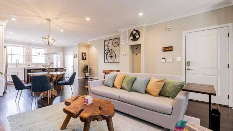 Die Unterkunft umfasst insgesamt drei Schlafzimmer, ein Wohnzimmer und zwei Badezimmer. Die Badezimmer sind mit Duschen und kostenlosen Pflegeprodukten ausgestattet. Handtücher und Bettwäsche werden bereitgestellt.