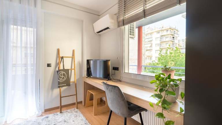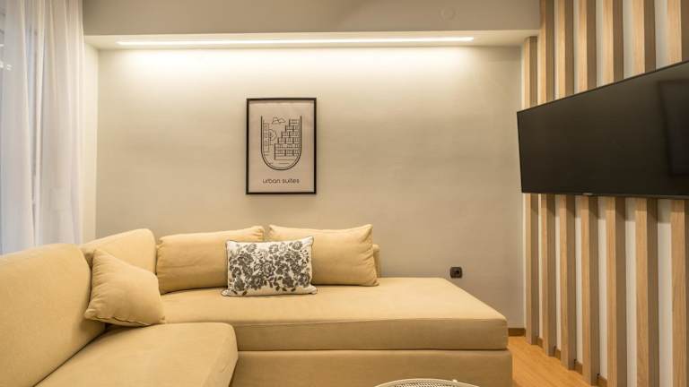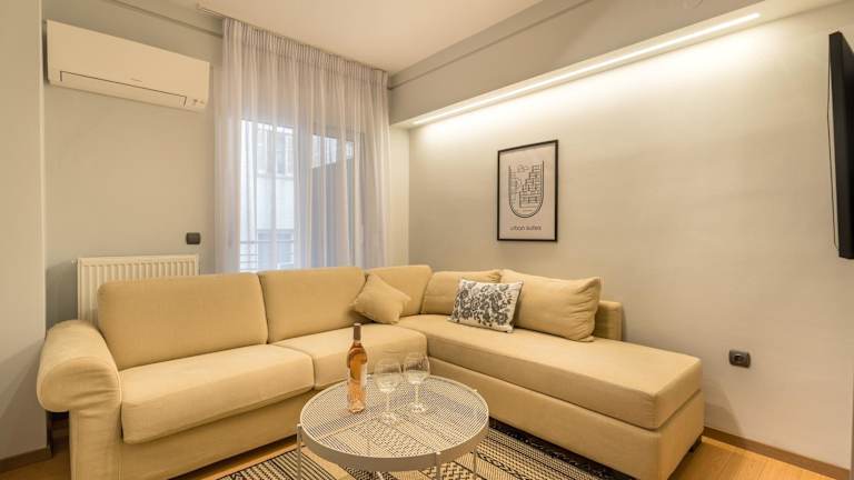 Das klimatisierte Apartment im Urban suites- HELEXPO verfügt über ein gemütliches Schlafzimmer, ein geräumiges Wohnzimmer und eine voll ausgestattete Küche mit einem Kühlschrank und einer Kaffeemaschine. Das Badezimmer ist mit einer erfrischenden Dusche und kostenlosen Pflegeprodukten ausgestattet. Handtücher und Bettwäsche werden im Apartment gestellt, um den Gästen einen angenehmen Aufenthalt zu ermöglichen. Ein Balkon bietet einen zusätzlichen Raum, um den atemberaubenden Blick auf die Stadt und das Meer zu genießen.