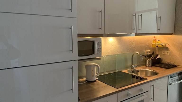 Das Apartment bietet ein komfortables Schlafzimmer, eine voll ausgestattete Küche mit Kühlschrank und Geschirrspüler sowie ein modernes Badezimmer mit Dusche. Der gemütliche Sitzbereich lädt zum Entspannen ein und der Flachbild-TV sorgt für Unterhaltung. Handtücher und Bettwäsche werden Ihnen zur Verfügung gestellt, um Ihren Aufenthalt noch angenehmer zu gestalten.