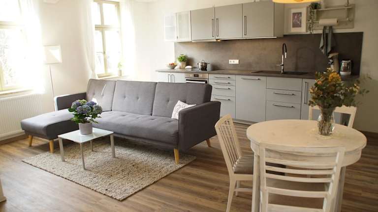Die Umgebung bietet viele Möglichkeiten für Aktivitäten im Freien, wie zum Beispiel Wanderungen im Nationalpark Sächsische Schweiz. Darüber hinaus können Sie das Schloss und den Park Pillnitz besuchen oder das Panometer Dresden erkunden. Der Flughafen Dresden ist nur 59 km vom Apartment entfernt.