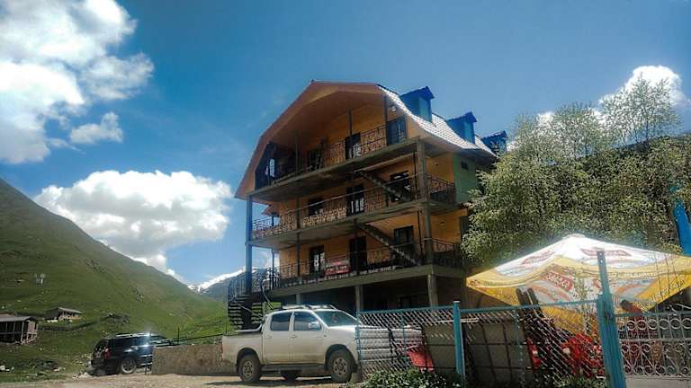 Das Ushguli Panorama Guest House in Ushguli bietet eine gemütliche Unterkunft mit herrlichem Bergblick. Das Hotel verfügt über eine Vielzahl von Annehmlichkeiten wie eine Gemeinschaftslounge, eine Terrasse, ein Restaurant und eine Bar. Die freundlichen Mitarbeiter stehen Ihnen rund um die Uhr zur Verfügung und bieten Flughafentransfers und eine Autovermietung an. Genießen Sie ein kontinentales Frühstück und erkunden Sie die Umgebung beim Wandern und Skifahren.