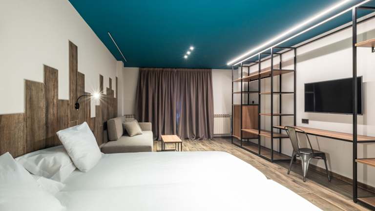 Die Zimmer sind individuell klimatisierbar und bieten einen Balkon oder eine Terrasse mit Bergblick. Zur Ausstattung gehören unter anderem ein Doppelbett und ein Sofabett, ein Kühlschrank sowie eine Minibar. Weiterhin bieten die Zimmer einen Direktwahltelefon, einen Fernseher mit Satelliten-/Kabelempfang und kostenfreies WLAN. Die Badezimmer sind mit Dusche und Badewanne ausgestattet und bieten einen Haartrockner. Rollstuhlgerechte Zimmer sind ebenfalls verfügbar.