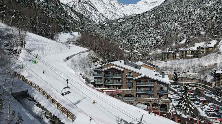 Das Hotel ist direkt neben den Pisten von Les Marrades gelegen, nur wenige Schritte vom Skilift Pal-Arinsal entfernt. Das Zentrum von Arinsal ist etwa 800 m entfernt und die Entfernung nach Andorra la Vella beträgt ca. 10 km. Die Umgebung ist von der beeindruckenden Berglandschaft der Pyrenäen geprägt. Die internationalen Flughäfen von Barcelona und Toulouse-Blagnac sind jeweils rund 250 km entfernt.