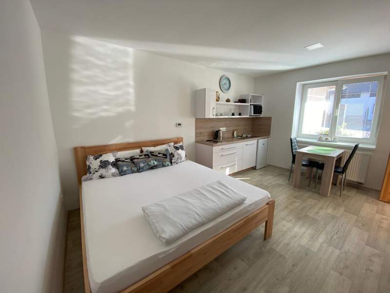Das Útulná garsonka v přírodě 2 verfügt über ein komfortables Schlafzimmer, in dem Sie sich nach einem langen Tag entspannen können. Die gut ausgestattete Küche bietet Ihnen die Möglichkeit, Ihre eigenen Mahlzeiten zuzubereiten, und das moderne Badezimmer verfügt über eine Dusche und kostenlose Pflegeprodukte. Für Unterhaltung sorgt ein Flachbild-TV.