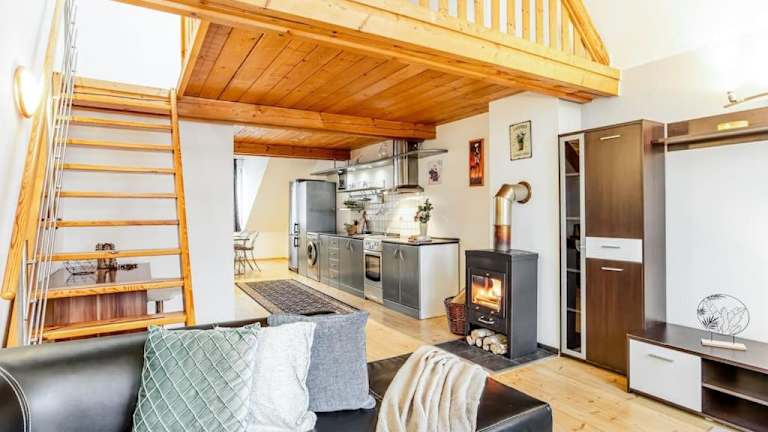 Die Utulny a prostorny podkrovni byt s krbovymi kamny verfügt über ein gemütliches Schlafzimmer, ein geräumiges Wohnzimmer und eine voll ausgestattete Küche. Die Wohnung bietet Platz für eine komfortable Unterkunft und ist ideal für Reisende, die die Freiheit und den Komfort einer eigenen Wohnung suchen. Handtücher und Bettwäsche werden gestellt, so dass Sie sich um nichts kümmern müssen. Kostenloses WLAN ist in der gesamten Unterkunft verfügbar, so dass Sie jederzeit mit der Welt verbunden bleiben können.