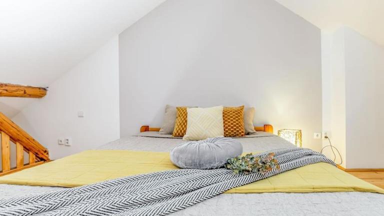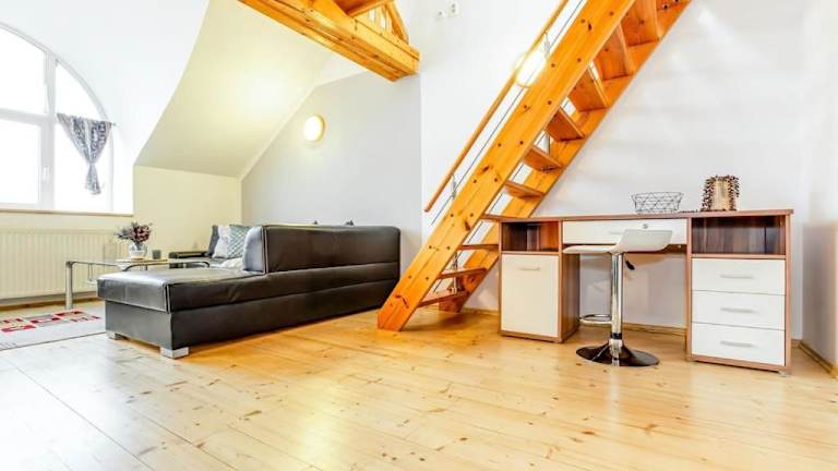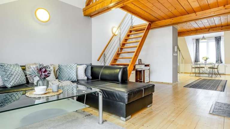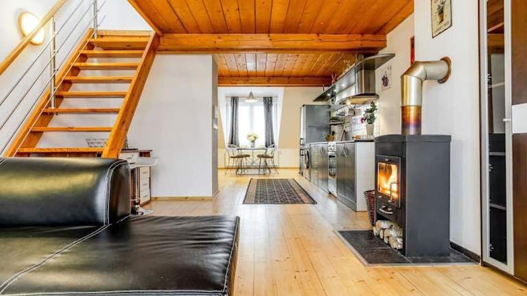 Das Utulny a prostorny podkrovni byt s krbovymi kamny ist eine gemütliche und geräumige Dachgeschosswohnung in České Budějovice. Die Wohnung bietet einen wunderschönen Blick auf die Stadt und liegt in der Nähe vieler Sehenswürdigkeiten wie dem Přemysl-Otakar-II-Platz und dem Schwarzen Turm. Mit einem Schlafzimmer, einem Wohnzimmer und einer voll ausgestatteten Küche bietet das Apartment alle Annehmlichkeiten, die Sie für einen angenehmen Aufenthalt benötigen. Kostenlose WLAN-Nutzung ist in der gesamten Unterkunft verfügbar.