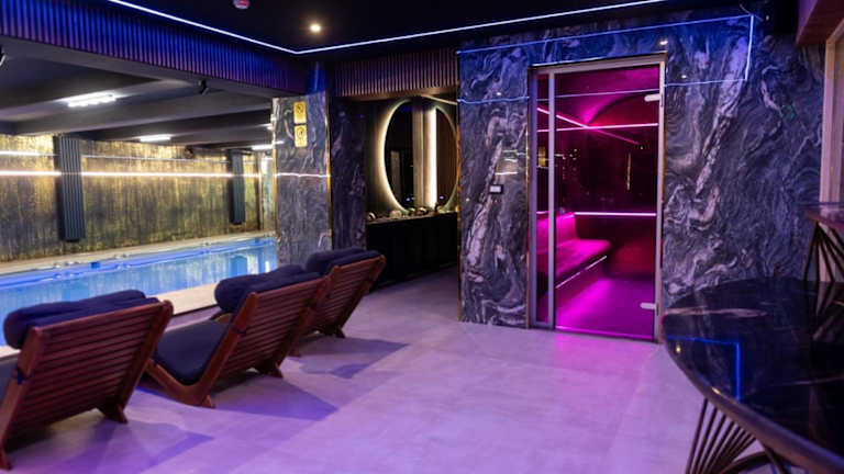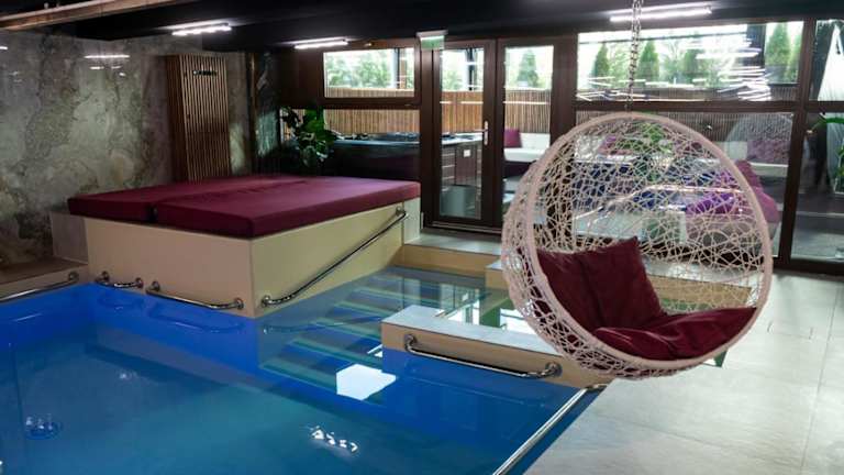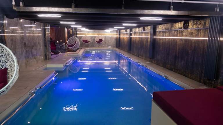 Zur sportlichen Betätigung bietet die Unterkunft Einrichtungen wie einen Innenpool, einen beheizten Pool, einen Whirlpool/Jacuzzi sowie ein Dampfbad. Zusätzlich sind Sonnenliegen und ein Tauchbecken vorhanden.