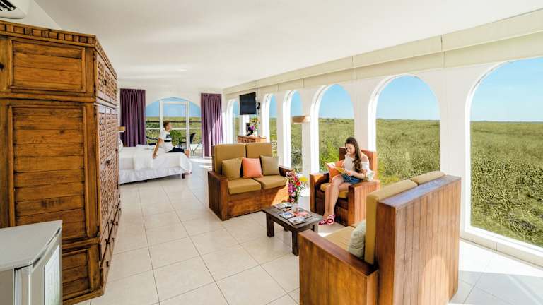 Das Uxmal Resort Maya ist ein charmantes Hotel, das Sie mitten im Yucatan-Dschungel willkommen heißt. Genießen Sie entspannte Tage am Außenpool, erkunden Sie die archäologische Stätte von Uxmal und lassen Sie sich von der mexikanischen Küche im hoteleigenen Restaurant verwöhnen. Die hellen Zimmer bieten Ihnen allen Komfort, den Sie für einen gelungenen Aufenthalt benötigen.