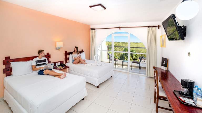 Die hellen und klimatisierten Zimmer im Uxmal Resort Maya bieten Ihnen einen komfortablen Rückzugsort während Ihres Aufenthalts. Jedes Zimmer ist mit einem Safe, einem Flachbild-Kabel-TV und kostenfreiem WLAN ausgestattet. Im Badezimmer finden Sie einen Haartrockner für Ihre Bequemlichkeit.