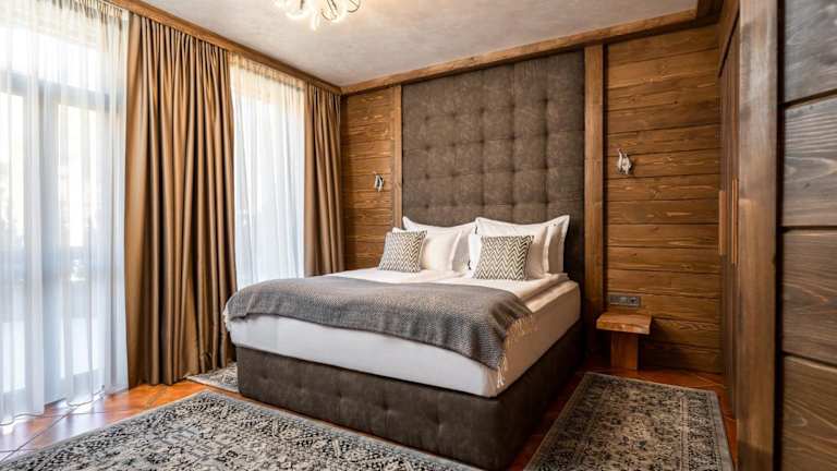 Die V Chalet Residence bietet Übernachtungsmöglichkeiten in einem ansprechenden Ambiente mit Garten, kostenlosen Privatparkplätzen, einer Terrasse und einem Restaurant. Die Unterkunft verfügt zudem über eine Gemeinschaftsküche und einen Grill, um den Aufenthalt angenehmer zu gestalten. Darüber hinaus stehen den Gästen Bilder von einem Bergblick, einer Sauna und einem Whirlpool zur Verfügung.